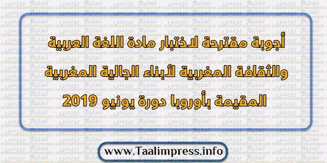 أجوبة مقترحة لاختبار مادة اللغة العربية والثقافة المغربية لأبناء الجالية المغربية المقيمة بأوروبا دورة يونيو 2019