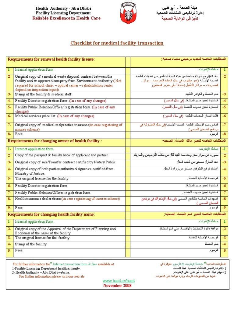 Cheeklist For All Facility Transaction New1 Health Care Public Health