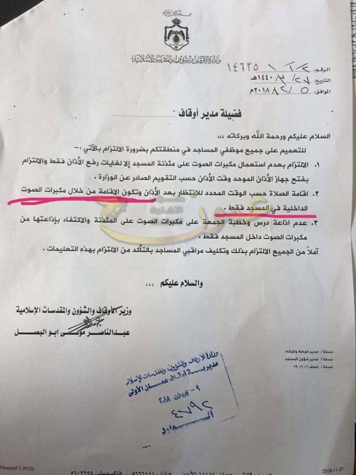 ابو البصل يحظر اذاعة خطبة الجمعة واقامة الصلاة عبر مآذن المساجد انباء الوطن